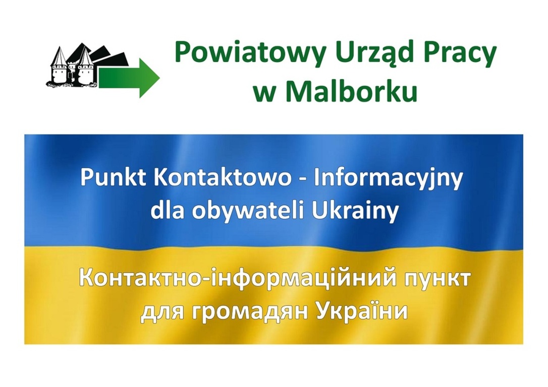 Powiatowy Urząd Pracy w Malborku informuje o utworzeniu w siedzibie Urzędu Punktu Kontaktowo - Informacyjnego dla uchodźców z Ukrainy i pracodawców zainteresowanych zatrudnieniem cudzoziemców, w którym możliwe będzie uzyskanie odpowiednich informacji: